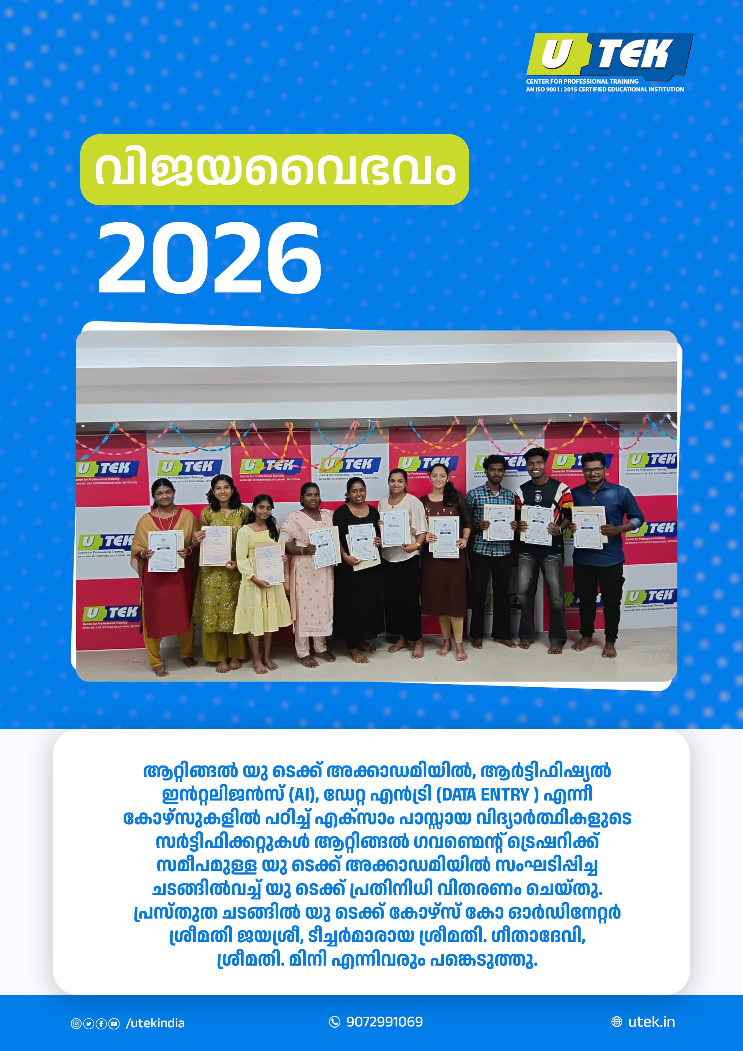 - ISO 9001-2015 Certified Organization.
